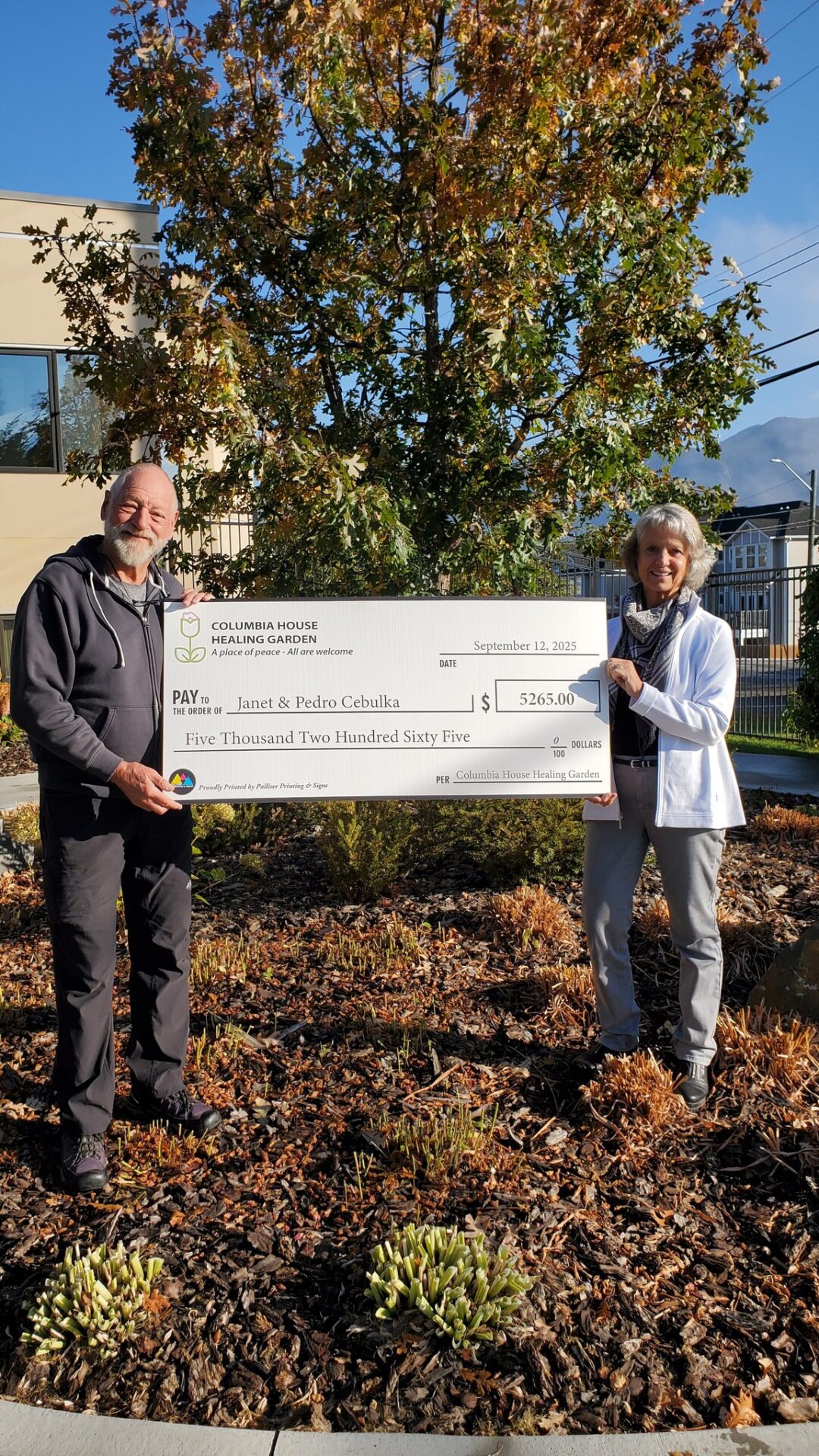 Congratulations to Janet and Pedro Cebulka the winners of the 50/50 draw! And most importantly for your generous contribution to the Columbia House Gardens 'where people meet people'.